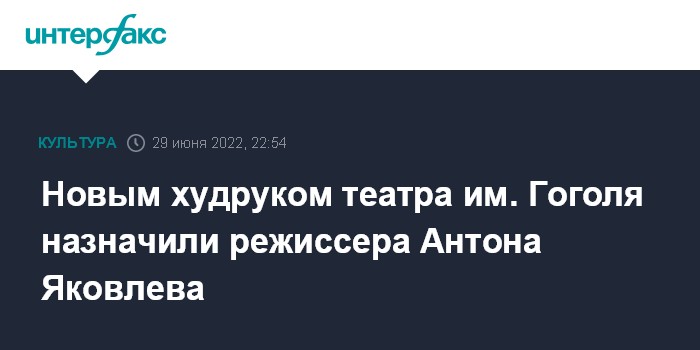 "Художественным руководителем Московского драматического театра им. Н.В. Гоголя назначен Антон Яковлев и директором театра Александр Бочарников", - сообщили "Интерфаксу" в департаменте.