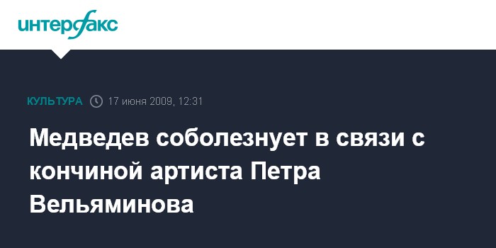 Медведев соболезнует в связи с кончиной артиста Петра Вельяминова