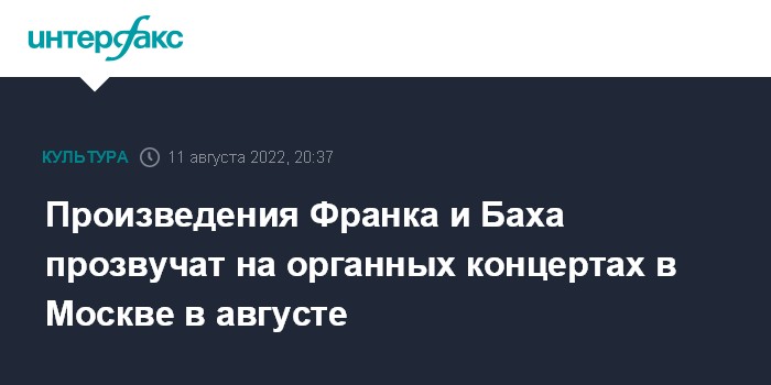 Произведения Франка и Баха прозвучат на органных концертах в Москве в августе