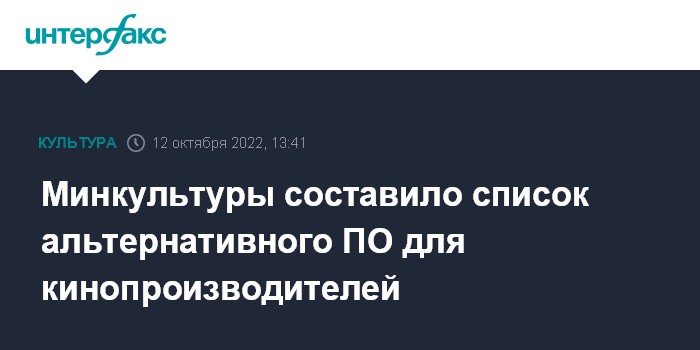 Москва. 12 октября. INTERFAX.RU - Минкультуры подготовило список альтернативного программного обеспечения для кинопроизводителей после ухода зарубежных компаний и осложнения поставок, но существующие решения требуют доработок, сообщила в Госдуме глава ведомства Ольга Любимова.