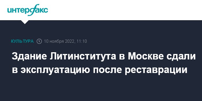 Москва. 10 ноября. INTERFAX.RU - В Москве выдано разрешение на ввод в эксплуатациию после реставрации исторического комплекса зданий Литературного института имени А. М. Горького на Тверском бульваре. Об этом сообщил гендиректор "Единого заказчика в строительстве" Карен Оганесян.