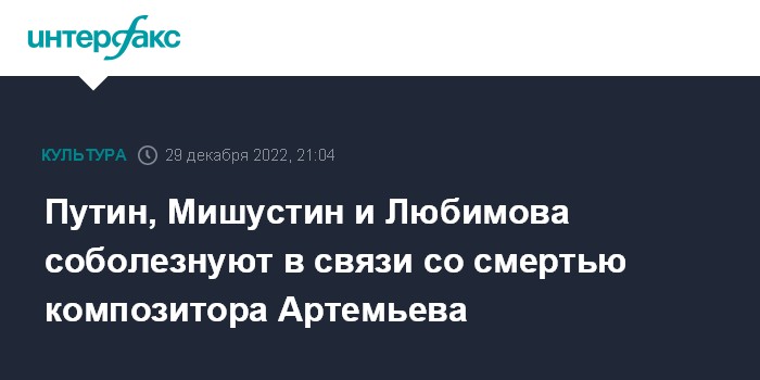 Путин, Мишустин и Любимова соболезнуют в связи со смертью композитора Артемьева