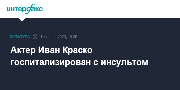 Москва. 10 января. INTERFAX.RU - Народный артист России Иван Краско госпитализирован с инсультом, врачи оценивают его состояние как стабильное, сообщил "Интерфаксу" концертный директор артиста Вячеслав Смородинов.