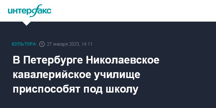 Москва. 27 января. INTERFAX.RU - В Петербурге здание Николаевского кавалерийского училища XIX века постройки приспособят под школу на тысячу мест, сообщила пресс-служба Главгосэкспертизы России. Ведомство выдало положительное заключение на этот проект.