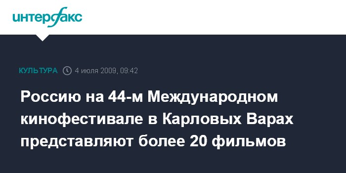 Москва. 4 июля. ИНТЕРФАКС - На 44-м МКФ в Карловых Варах (Чехия), который проходит с 3 по 11 июля, будет показана 21 российская картина, в том числе пять фильмов в рамках конкурсных программ.
