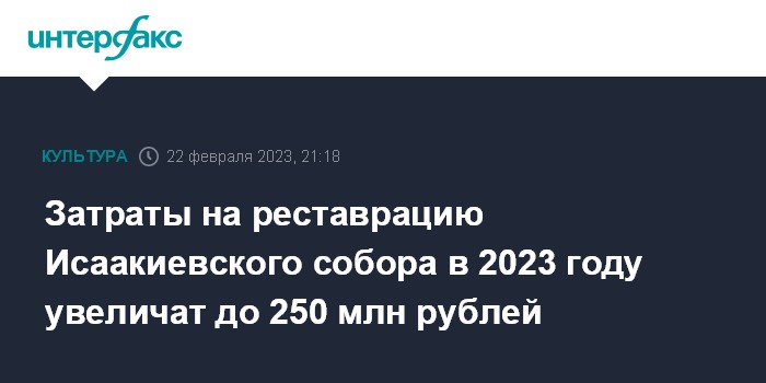 Затраты на реставрацию Исаакиевского собора в 2023 году увеличат до 250 млн рублей