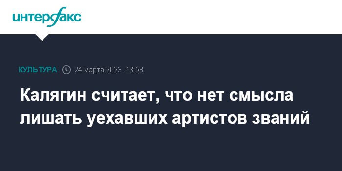 "Мне кажется смысла нет (...). Звание он имеет - не будешь в Америке объявлять "народный артист России". Всё же может быть, и в тебя могут кинуть что-нибудь, (...) все бывает, а могут и наоборот", - сказал Калягин на пресс-конференции, отвечая на вопрос, нужно ли лишать званий народный или заслуженный артист России покинувших страну артистов.