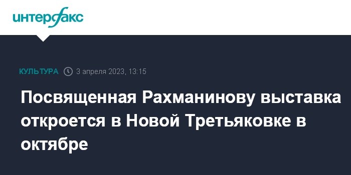 Москва. 3 апреля. INTERFAX.RU - Выставка, посвященная композитору и пианисту Сергею Рахманинову, откроется в Новой Третьяковке на Крымском Валу в октябре.