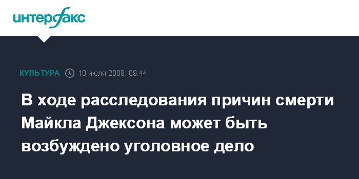 Москва. 9 июля. INTERFAX.RU – Семья Майкла Джексона знает, что в ходе расследования причин смерти певца может быть возбуждено уголовное дело, сообщает телекомпания Си-Эн-Эн.