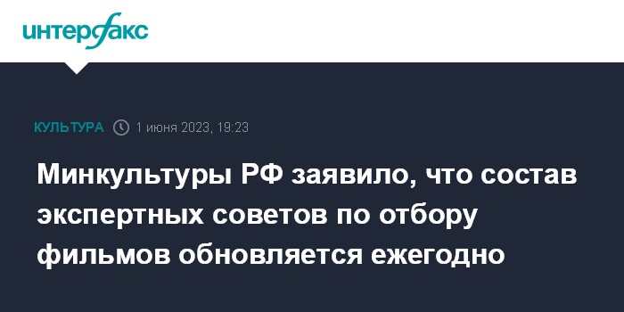 Минкультуры РФ заявило, что состав экспертных советов по отбору фильмов обновляется ежегодно