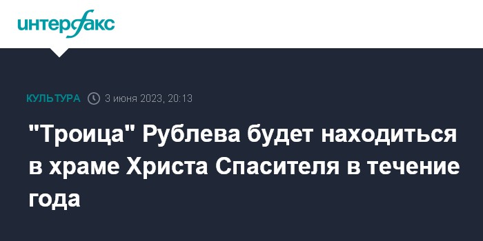 Москва. 3 июня. INTERFAX.RU - Икона "Троица" Андрея Рублева будет находиться в храме Христа Спасителя в течение года, после чего ее поместят в Троице-Сергиевой лавре, сообщил патриарх Кирилл.