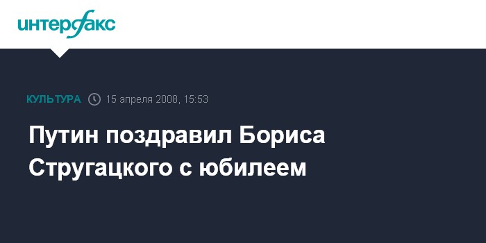 Москва. 15 апреля. INTERFAX.RU - Президент России Владимир Путин поздравил писателя-фантаста Бориса Стругацкого с 75-летием.