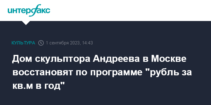 Дом скульптора Андреева в Москве восстановят по программе "рубль за кв.м в год"