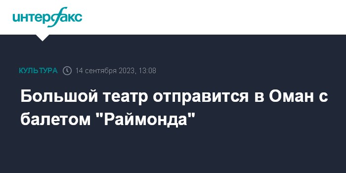 Москва. 14 сентября. INTERFAX.RU - Балетная труппа Государственного академического Большого театра в январе 2024 года отправится в Оман со спектаклем "Раймонда", сообщил на сборе труппы гендиректор ГАБТа Владимир Урин.