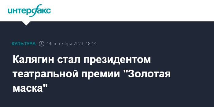 Москва. 14 сентября. INTERFAX.RU - Председатель Союза театральных деятелей (СТД) России Александр Калягин принял на себя обязанности президента театральной премии "Золотая маска", сообщили в СТД по итогам заседания рабочей группы по разработке проекта нового положения о премии и фестивале "Золотая Маска".