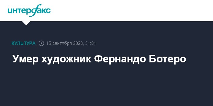 Москва. 15 сентября. INTERFAX.RU - Умер колумбийский художник и скульптор Фернандо Ботеро, изображавший людей, животных и предметы в преувеличенном объеме, создатель узнаваемого стиля "ботеризм", сообщает АР. Ему был 91 год.