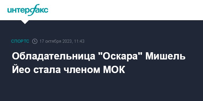 Москва. 17 октября. INTERFAX.RU - Малазийская актриса Мишель Йео избрана в качестве нового члена Международного олимпийского комитета, сообщается на сайте МОК.