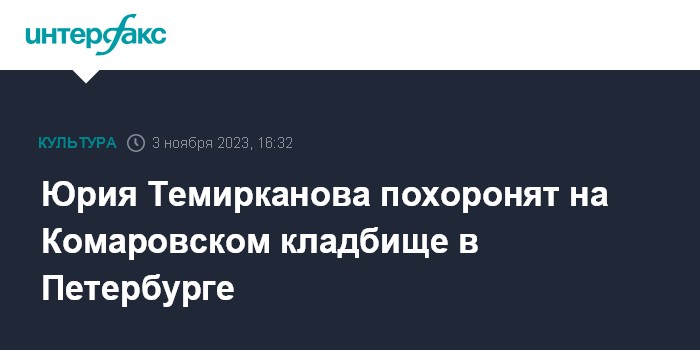 Москва. 3 ноября. INTERFAX.RU - Дирижера, художественного руководителя Санкт-Петербургской академической филармонии имени Шостаковича Юрия Темирканова похоронят на кладбище в Комарове на северо-западе Петербурга, сообщили "Интерфаксу" в пресс-службе филармонии.