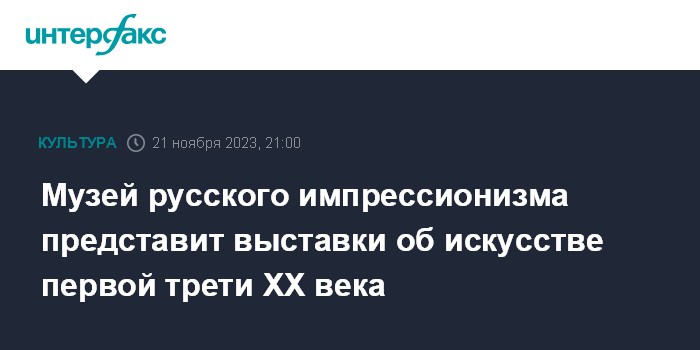 Москва. 21 ноября. INTERFAX.RU - Выставки, позволяющие увидеть искусство первой трети XX века с разных точек зрения, пройдут в Музее русского импрессионизма в 2024 году, сообщили в пресс-службе.