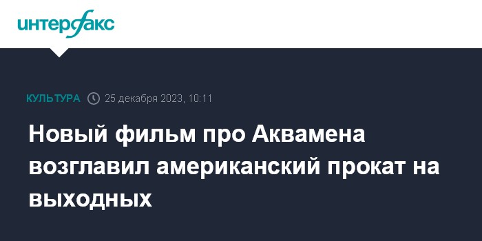 Москва. 25 декабря. INTERFAX.RU - Фильм "Аквамен и потерянное царство" заработал в кинотеатрах США и Канады $28 млн в дебютный уикэнд, став лидером североамериканского проката.