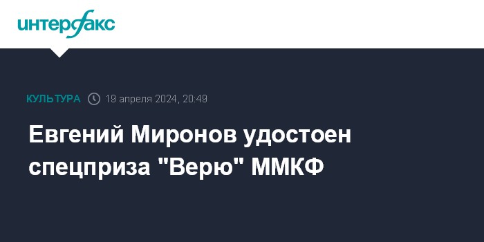 Евгений Миронов удостоен спецприза "Верю" ММКФ