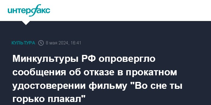 Минкультуры РФ опровергло сообщения об отказе в прокатном удостоверении фильму "Во сне ты горько плакал"