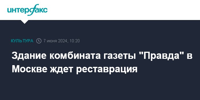 "Здание комбината газеты "Правда" отреставрируют. (...) После разработки проекта реставрации и его согласования с Мосгорнаследием будет выдано разрешение на проведение работ", - говорится в сообщении.