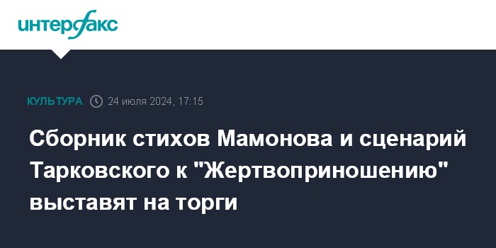 Сборник стихов Мамонова и сценарий Тарковского к "Жертвоприношению" выставят на торги