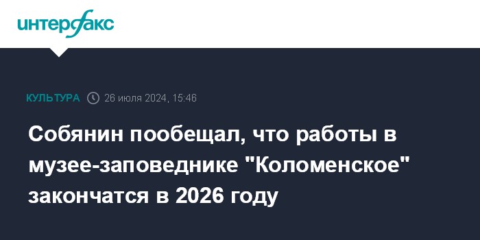 Собянин пообещал, что работы в музее-заповеднике "Коломенское" закончатся в 2026 году