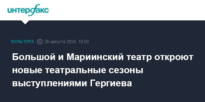 Большой и Мариинский театр откроют новые театральные сезоны выступлениями Гергиева