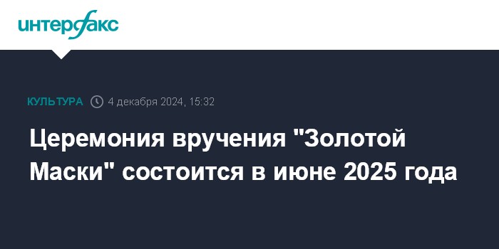 Церемония вручения "Золотой Маски" состоится в июне 2025 года