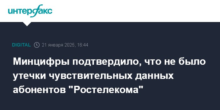 Минцифры подтвердило, что не было утечки чувствительных данных абонентов "Ростелекома"