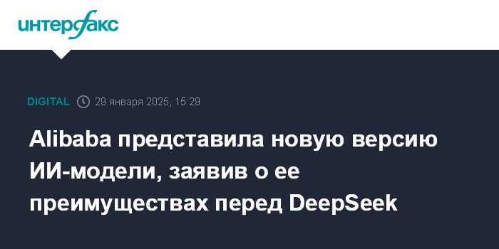 Москва. 29 января. INTERFAX.RU - Китайский интернет-гигант Alibaba Group Holding представил новую версию собственной ИИ-модели Qwen, которая, по его утверждению, превосходит ряд ведущих рыночных продуктов, в том числе модель DeepSeek.