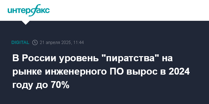 В России уровень "пиратства" на рынке инженерного ПО вырос в 2024 году до 70%
