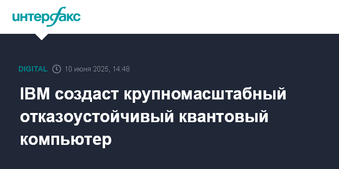 Москва. 10 июня. INTERFAX.RU - International Business Machines планирует создать первый в мире крупномасштабный отказоустойчивый квантовый компьютер к 2029 году, заявила компания.