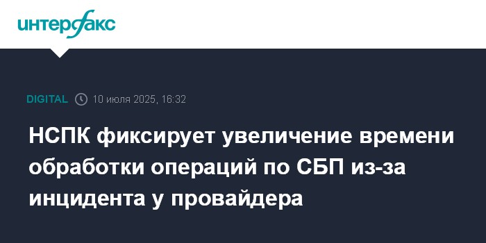 Москва. 10 июля. INTERFAX.RU - Национальная система платежных карт (НСПК), оператор карт "Мир" и Системы быстрых платежей (СБП), фиксирует увеличение времени обработки операций в СБП, говорится в сообщении НСПК.