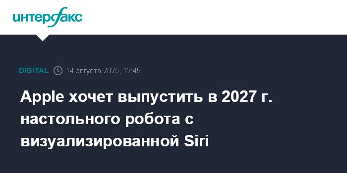 Москва. 14 августа. INTERFAX.RU - Американская Apple Inc. планирует выпустить настольного робота с визуализированной версией Siri и ряд других товаров на основе искусственного интеллекта (ИИ), пишет Bloomberg со ссылкой на информированные источники.
