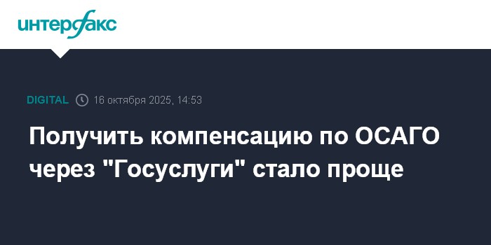 Москва. 16 октября. INTERFAX.RU - Получить компенсацию по ОСАГО на Едином портале государственных и муниципальных услуг (Госуслуги) теперь можно не только в случае оформления европротокола, говорится в сообщении Минцифры РФ.