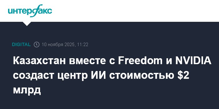 Москва. 10 ноября. INTERFAX.RU - Freedom Holding Corp. и Министерство искусственного интеллекта и цифрового развития Республики Казахстан объявили о планах по созданию суверенной экзаскейл инфраструктуры искусственного интеллекта NVIDIA и инициатив по развитию талантов, сообщила пресс-служба Freedom Holding Corp.