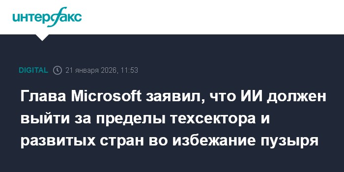 Москва. 21 января. INTERFAX.RU - Искусственный интеллект (ИИ) может превратиться в спекулятивный пузырь, если его не будут использовать за пределами крупных технологических компаний и богатых экономик, заявил главный исполнительный директор Microsoft Corp. Сатья Наделла в ходе Всемирного экономического форума (ВЭФ) в Давосе.