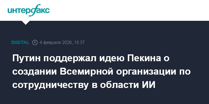 Москва. 4 февраля. INTERFAX.RU - Президент РФ Владимир Путин в ходе переговоров с председателем КНР Си Цзиньпином поддержал китайское предложение создать Всемирную организацию по сотрудничеству в области искусственного интеллекта, заявил помощник главы российского государства Юрий Ушаков.