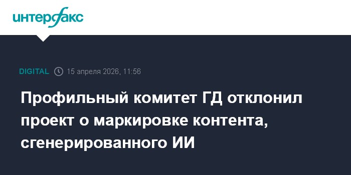 Москва. 15 апреля. INTERFAX.RU - Комитет Госдумы по информационной политике отклонил законопроект о маркировке контента, сгенерированного искусственным интеллектом (ИИ).