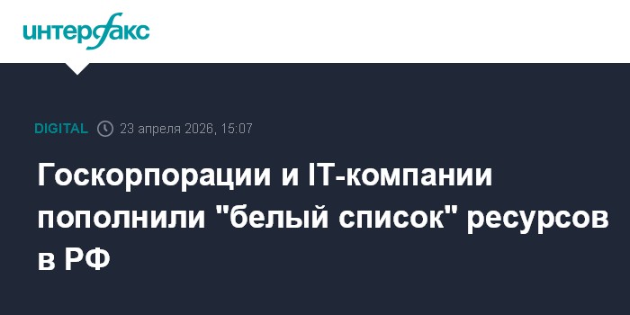Москва. 23 апреля. INTERFAX.RU - Минцифры РФ расширило так называемый белый список - перечень ресурсов, которые остаются доступными для пользователей во время ограничения мобильного интернета по соображениям безопасности. В него, в частности, вошли ресурсы госкорпораций, операторов и IT-компаний.