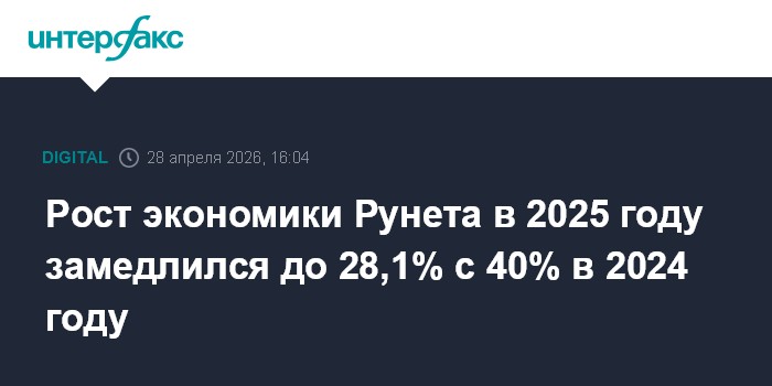 Рост экономики Рунета в 2025 году замедлился до 28,1% с 40% в 2024 году