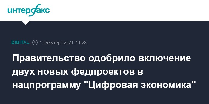 Правительство одобрило включение двух новых федпроектов в нацпрограмму "Цифровая экономика"