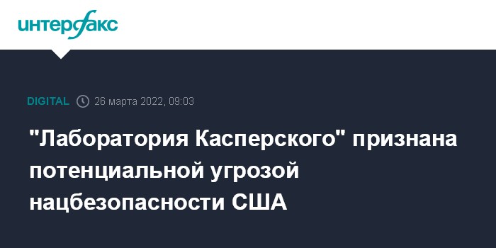 Москва. 26 марта. INTERFAX.RU - Федеральная комиссия по связи США включила "Лабораторию Касперского" в список поставщиков телекоммуникационного оборудования и сервисов, представляющих угрозу национальной безопасности, следует из релиза, опубликованного на сайте ведомства.