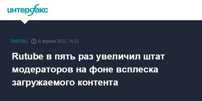 Москва. 8 апреля. INTERFAX.RU - Российский видеохостинг Rutube увеличил штат модераторов в пять раз из-за "колоссального" объема загружаемых видео, рассказал журналистам генеральный директор компании Александр Моисеев.