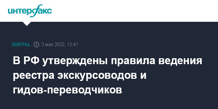 Москва. 3 мая. INTERFAX.RU - Правительство РФ утвердило правила ведения единого реестра экскурсоводов и гидов-переводчиков, он будет доступен на сайте Ростуризма уже в ближайшее время.