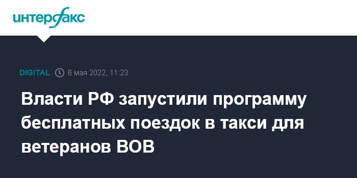 Власти РФ запустили программу бесплатных поездок в такси для ветеранов ВОВ