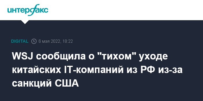 WSJ сообщила о "тихом" уходе китайских IT-компаний из РФ из-за санкций США